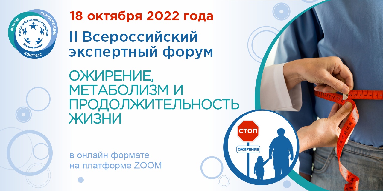 18 октября 2022 года состоится II Всероссийский экспертный форум «Ожирение, метаболизм и продолжительность жизни». Организатор форума — Всероссийский союз пациентов.