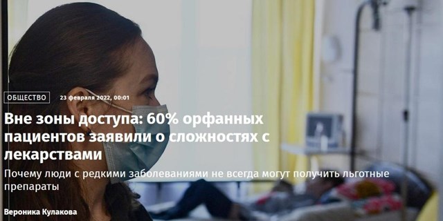 В ходе опроса, проведенного в январе-феврале 2022 года, о проблеме заявили 84% пациентов с муковисцидозом, 37% — с гемофилией, 60% — с болезнью Дюшенна и 53% — с фенилкетонурией. В целом более половины респондентов по орфанным нозологиям в прошлом году сталкивались с недоступностью льготных профильных препаратов (59,4%) и льготных лекарств по сопутствующим заболеваниям (56%).