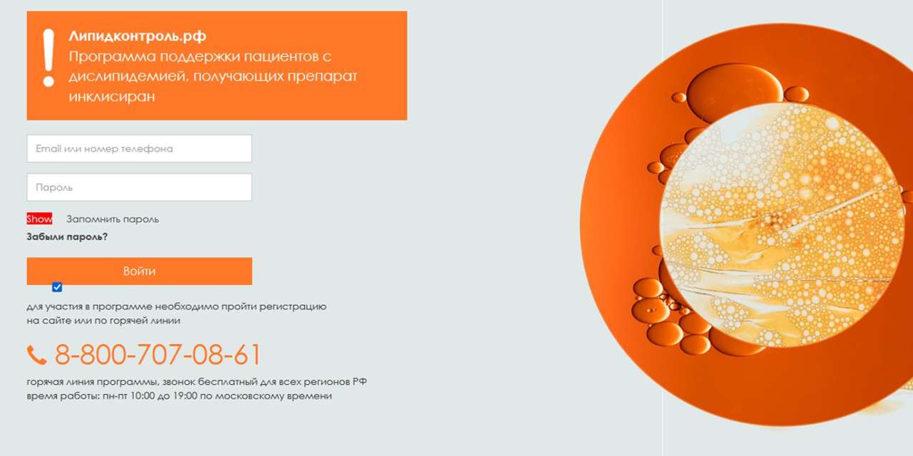 Лечение сердечно-сосудистых заболеваний, связанных с атеросклерозом, требуют постоянного внимания над широким спектром задач: питанием, образом жизни, принимаемого лечения и контроля анализов. Чтобы сделать Ваше лечение комфортным, разработана программа поддержки, которая предоставляются бесплатно для пациентов с повышенным уровнем «плохого» холестерина – холестерина липопротеинов низкой плотности (ХС ЛНП), получающих терапию препаратом инклисиран. Основная задача проекта – научить пациентов удерживать цифры ХС ЛНП в границах целевого уровня.